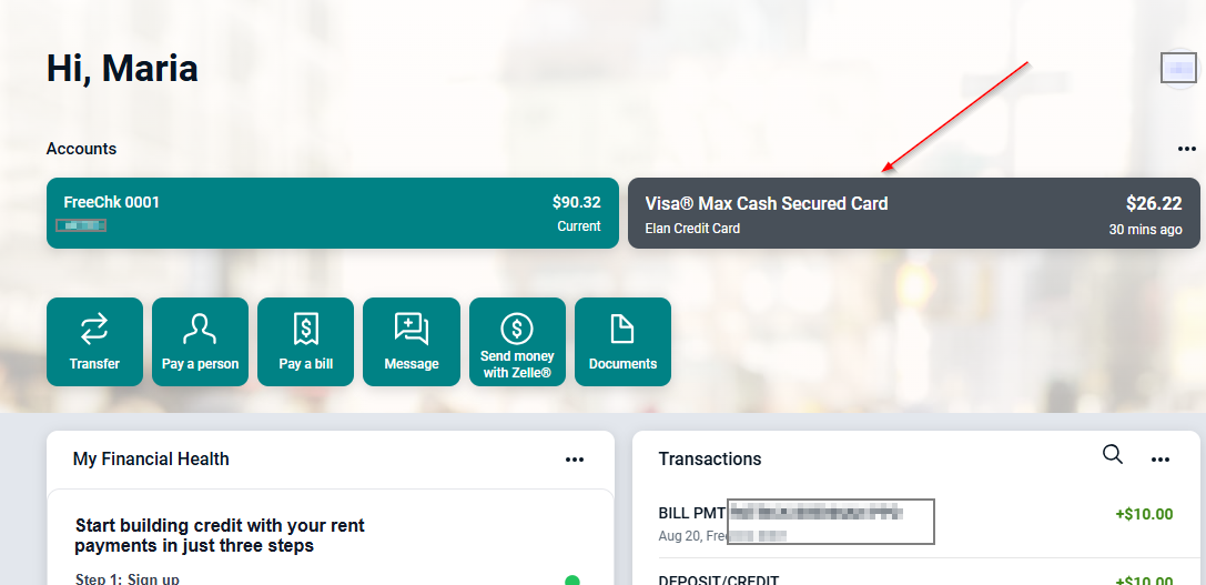 - From here, you can add your Carver Credit Card (Elan), any external credit cards, or other financial accounts.