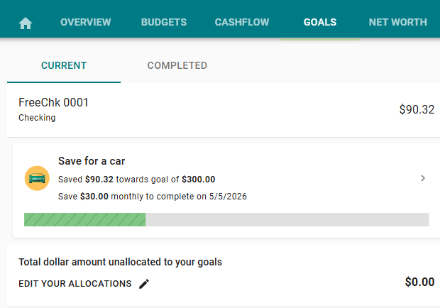 Your Goal Summary will update automatically, showing your progress, estimated completion date, and recommended monthly contributions based on your account activity.
