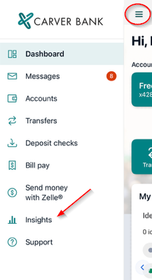 Insights is built directly into Carver Bank’s Online and Mobile Banking - no extra downloads or sign-ups needed. Once you log in, accessing Insights is quick and easy.